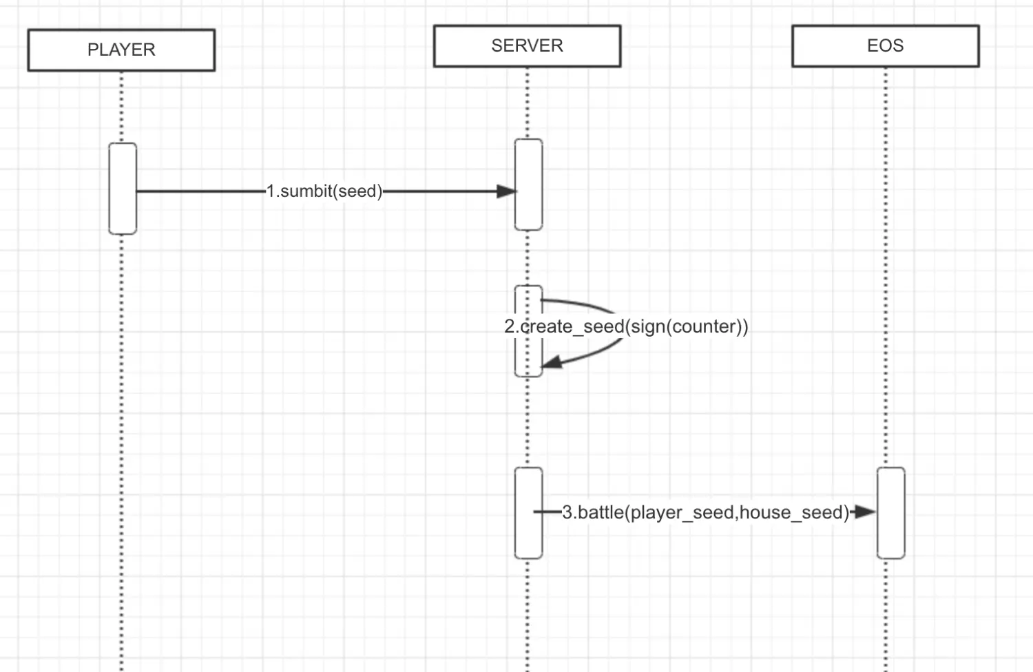 玩家将服务器种子哈希、时间戳、玩家种子以及签名数据一起提交到智能合约