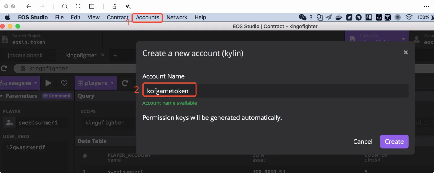 token合约的代码编写好之后,先为代币创建一个EOS账号: