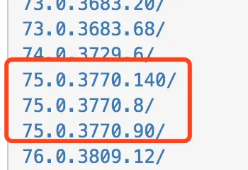 下载ChromeDriver 地址:https://npm.taobao.org/mirrors/chromedriver,由于目前下载的chrome版本对应的driver是75开头的,所以下载的时候选择75开头版本,之后点击进去,根据你的系统选择版本,如果你本地开发是mac,选择mac64,如果是服务器,选择linux64。