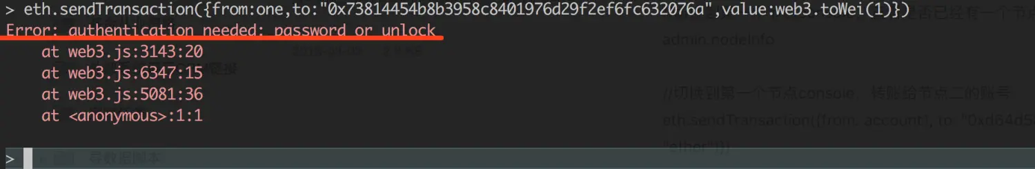 执行后输出错误信息,根据提示可以知道大概知道账号通常处于被锁定状态,需要我们解锁才能进行转账操作。