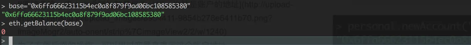 为了方便后面的操作,可以用过变量来表示这个账户地址,并看下账户里面的余额